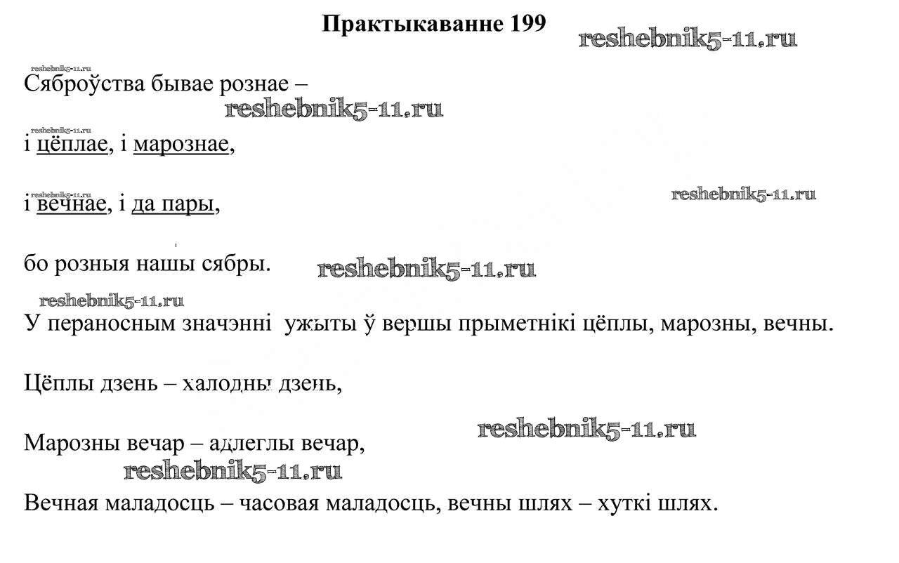 Белорусский язык за 5 класс Валочка Учебник Национальный институт образования часть 2. практыкаванні 199