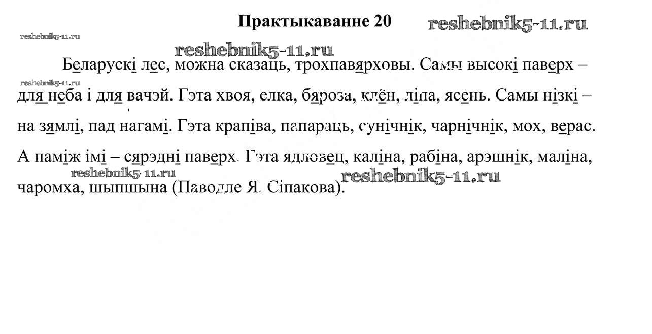 Готовая домашняя работа с ответами по Белорусскому языку за 5 класс Валочка, Зелянко, Мартынкевіч, Якуба Учебник Часть 1, 2 Национальный институт образования 2019 ФГОС - Часть 2. Практыкаванні 20