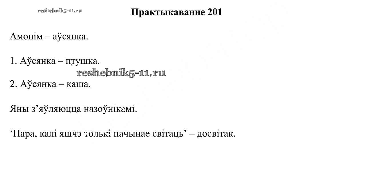 Готовая домашняя работа с ответами по Белорусскому языку за 5 класс Валочка, Зелянко, Мартынкевіч, Якуба Учебник Часть 1, 2 Национальный институт образования 2019 ФГОС - Часть 2. Практыкаванні 201