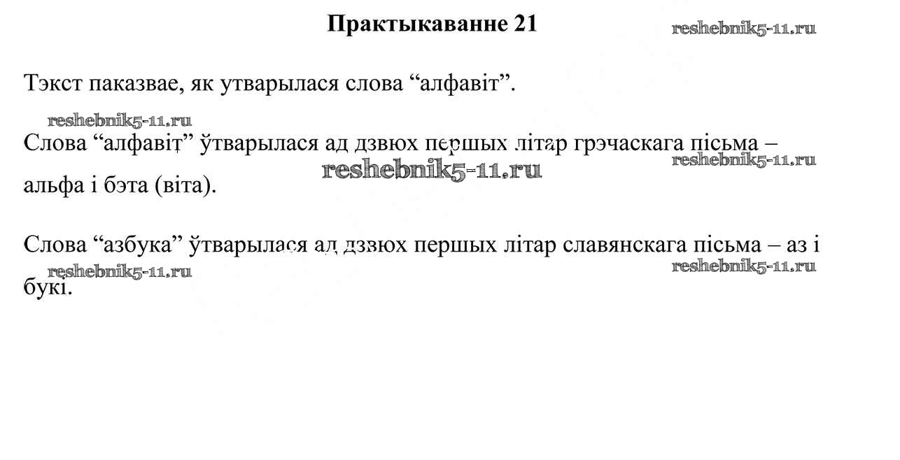 Готовая домашняя работа с ответами по Белорусскому языку за 5 класс Валочка, Зелянко, Мартынкевіч, Якуба Учебник Часть 1, 2 Национальный институт образования 2019 ФГОС - Часть 2. Практыкаванні 21