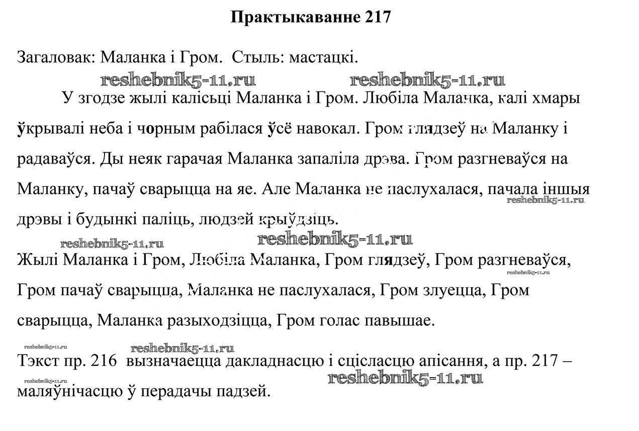 Готовая домашняя работа с ответами по Белорусскому языку за 5 класс Валочка, Зелянко, Мартынкевіч, Якуба Учебник Часть 1, 2 Национальный институт образования 2019 ФГОС - Часть 2. Практыкаванні 217