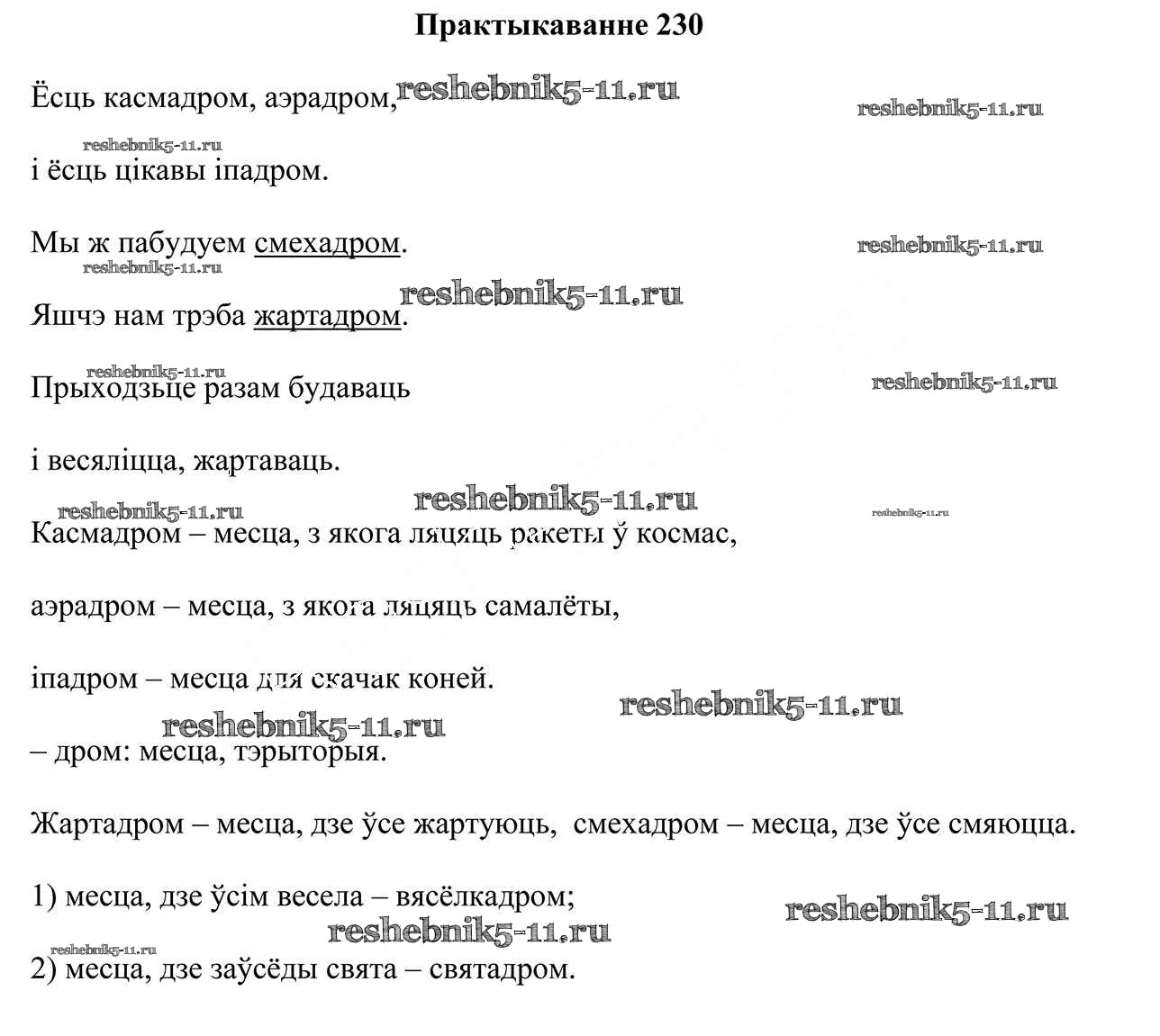 Готовая домашняя работа с ответами по Белорусскому языку за 5 класс Валочка, Зелянко, Мартынкевіч, Якуба Учебник Часть 1, 2 Национальный институт образования 2019 ФГОС - Часть 2. Практыкаванні 230