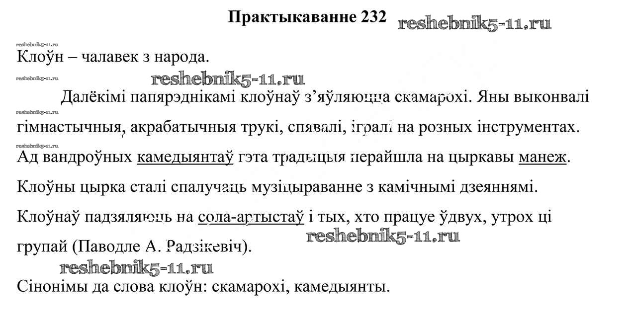 Готовая домашняя работа с ответами по Белорусскому языку за 5 класс Валочка, Зелянко, Мартынкевіч, Якуба Учебник Часть 1, 2 Национальный институт образования 2019 ФГОС - Часть 2. Практыкаванні 232