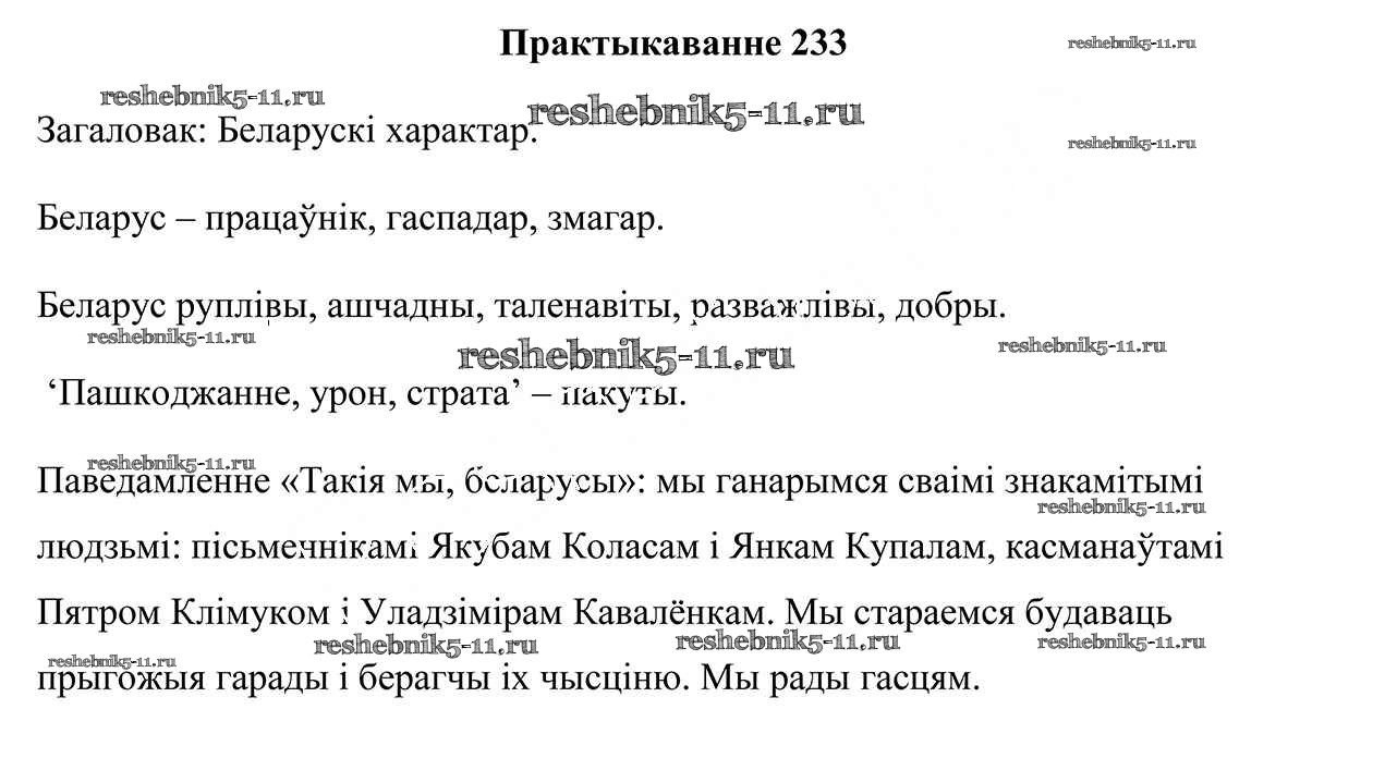 Готовая домашняя работа с ответами по Белорусскому языку за 5 класс Валочка, Зелянко, Мартынкевіч, Якуба Учебник Часть 1, 2 Национальный институт образования 2019 ФГОС - Часть 2. Практыкаванні 233