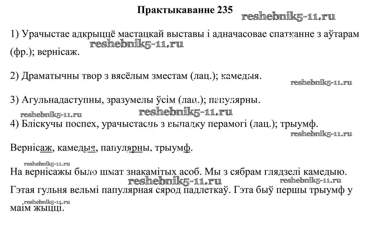 Готовая домашняя работа с ответами по Белорусскому языку за 5 класс Валочка, Зелянко, Мартынкевіч, Якуба Учебник Часть 1, 2 Национальный институт образования 2019 ФГОС - Часть 2. Практыкаванні 235