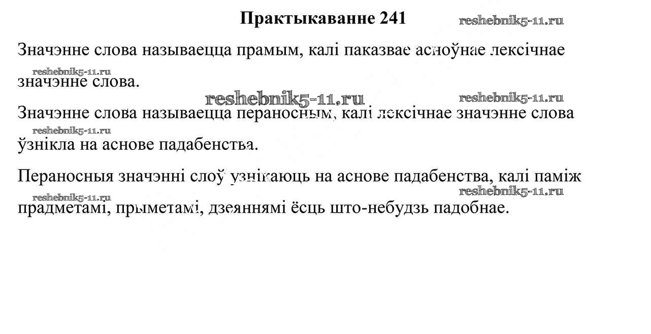 Готовая домашняя работа с ответами по Белорусскому языку за 5 класс Валочка, Зелянко, Мартынкевіч, Якуба Учебник Часть 1, 2 Национальный институт образования 2019 ФГОС - Часть 2. Практыкаванні 241