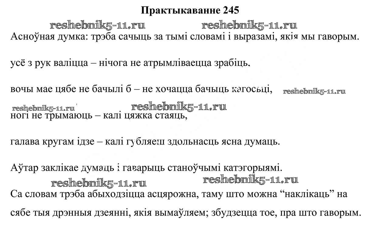 Готовая домашняя работа с ответами по Белорусскому языку за 5 класс Валочка, Зелянко, Мартынкевіч, Якуба Учебник Часть 1, 2 Национальный институт образования 2019 ФГОС - Часть 2. Практыкаванні 245