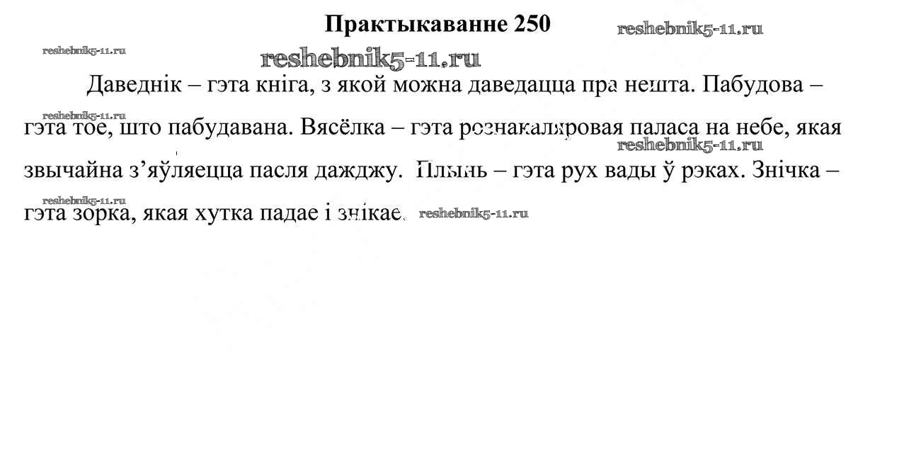 Готовая домашняя работа с ответами по Белорусскому языку за 5 класс Валочка, Зелянко, Мартынкевіч, Якуба Учебник Часть 1, 2 Национальный институт образования 2019 ФГОС - Часть 2. Практыкаванні 250