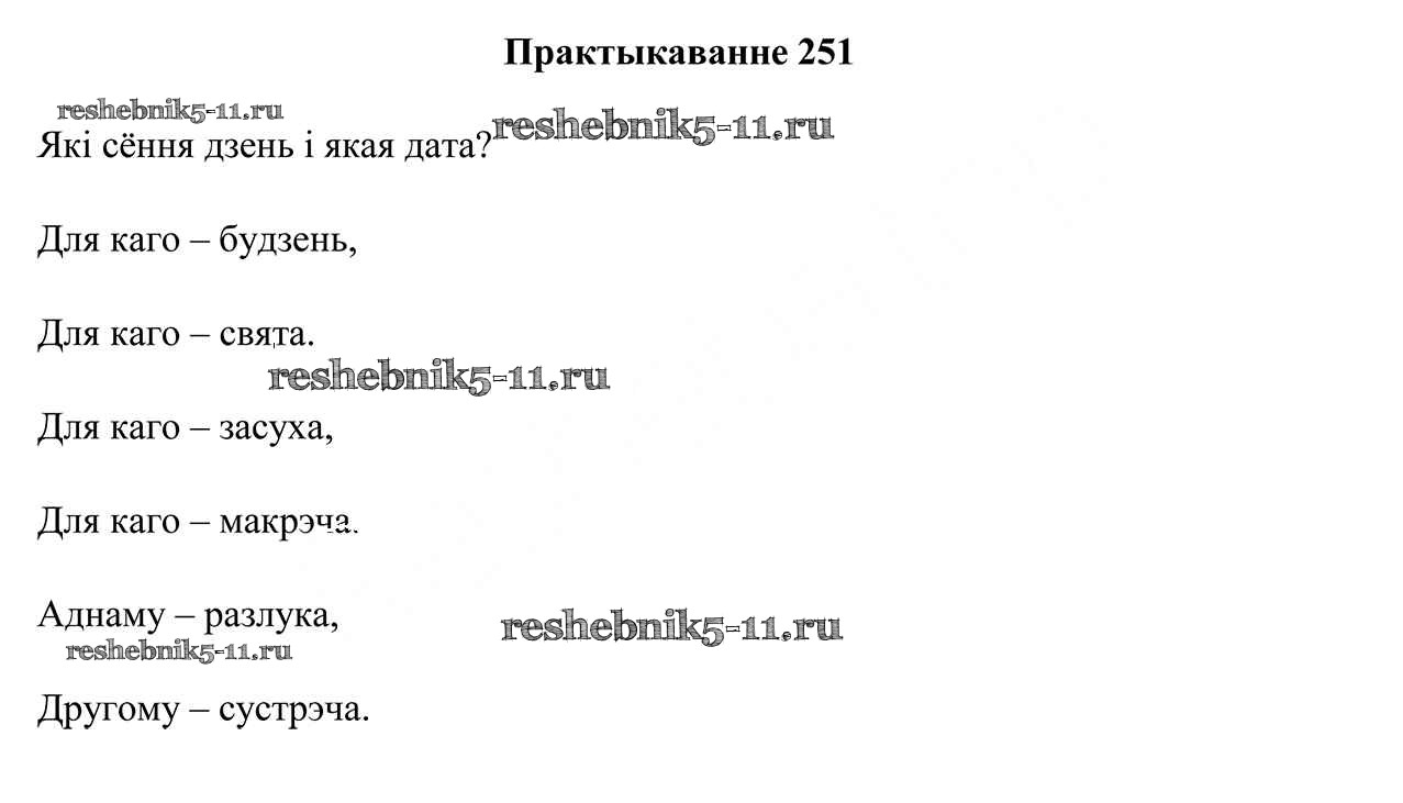 Готовая домашняя работа с ответами по Белорусскому языку за 5 класс Валочка, Зелянко, Мартынкевіч, Якуба Учебник Часть 1, 2 Национальный институт образования 2019 ФГОС - Часть 2. Практыкаванні 251