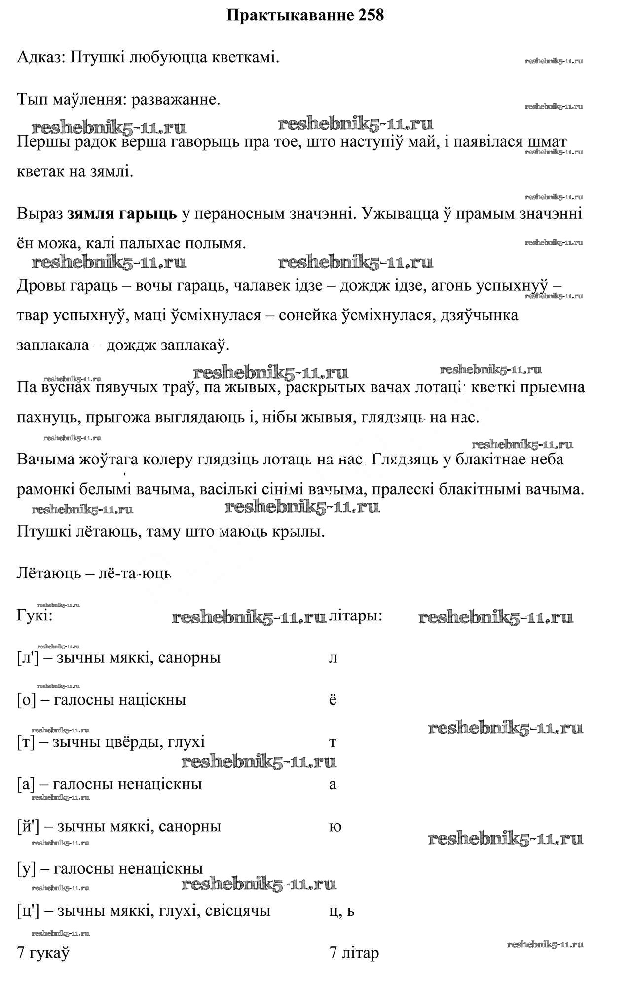 Готовая домашняя работа с ответами по Белорусскому языку за 5 класс Валочка, Зелянко, Мартынкевіч, Якуба Учебник Часть 1, 2 Национальный институт образования 2019 ФГОС - Часть 2. Практыкаванні 258