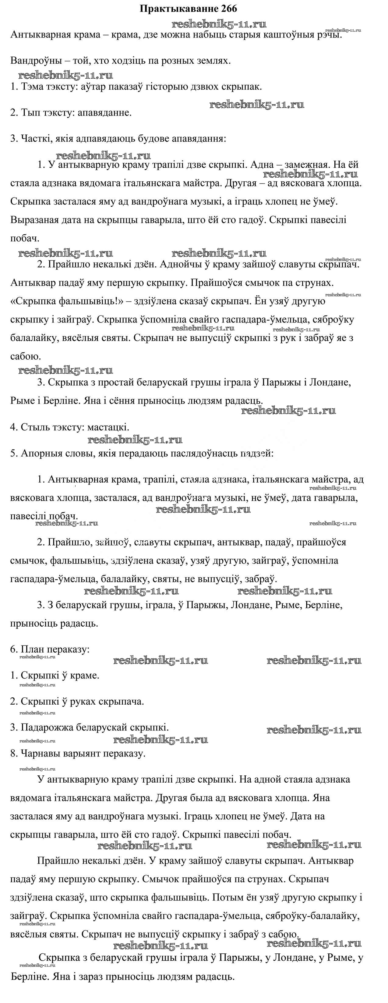 Готовая домашняя работа с ответами по Белорусскому языку за 5 класс Валочка, Зелянко, Мартынкевіч, Якуба Учебник Часть 1, 2 Национальный институт образования 2019 ФГОС - Часть 2. Практыкаванні 266