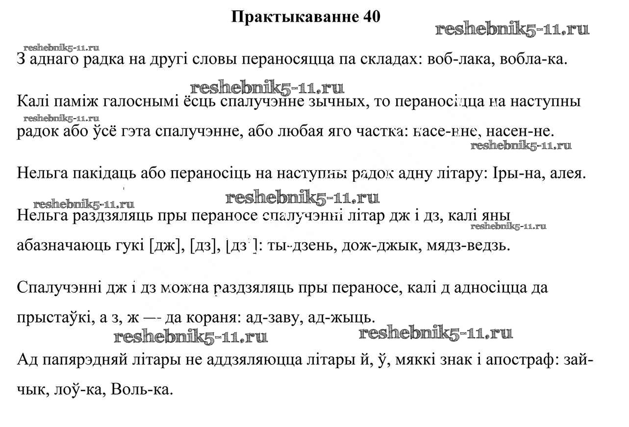 Готовая домашняя работа с ответами по Белорусскому языку за 5 класс Валочка, Зелянко, Мартынкевіч, Якуба Учебник Часть 1, 2 Национальный институт образования 2019 ФГОС - Часть 2. Практыкаванні 40