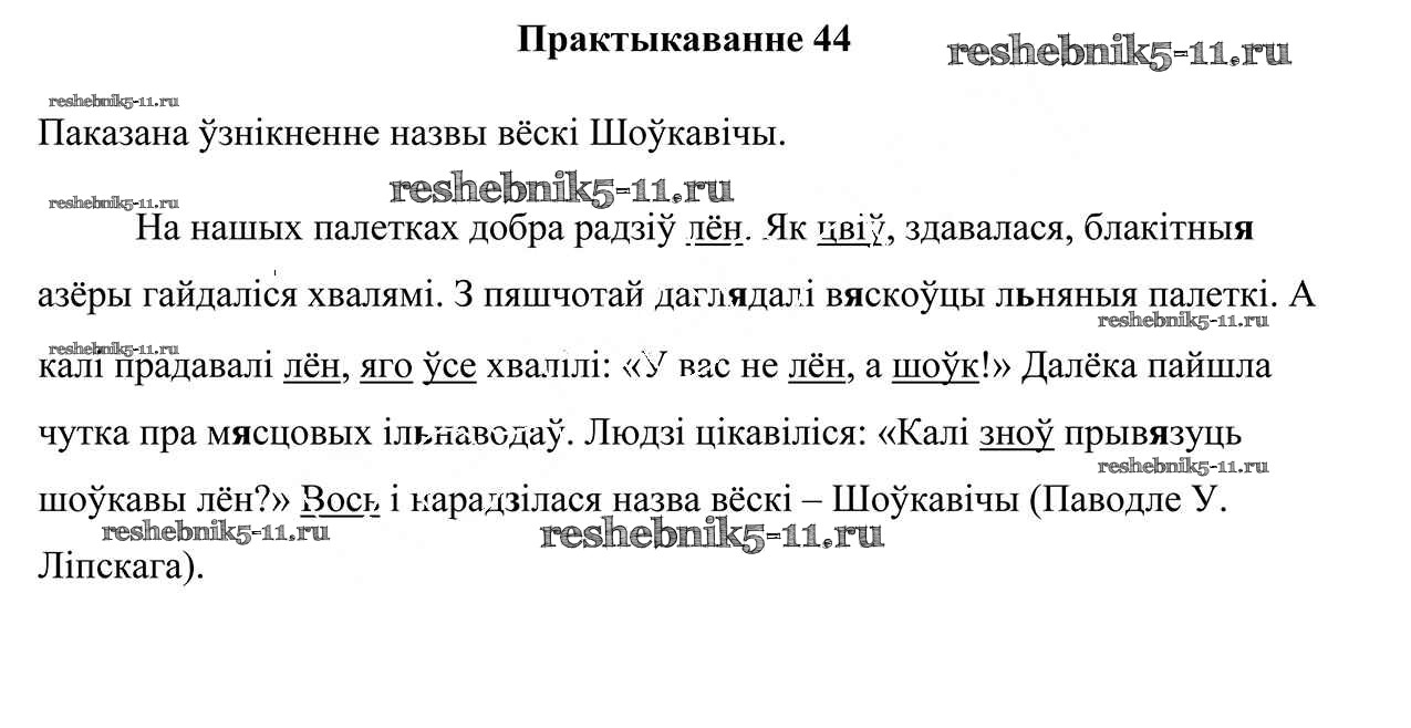 Готовая домашняя работа с ответами по Белорусскому языку за 5 класс Валочка, Зелянко, Мартынкевіч, Якуба Учебник Часть 1, 2 Национальный институт образования 2019 ФГОС - Часть 2. Практыкаванні 44