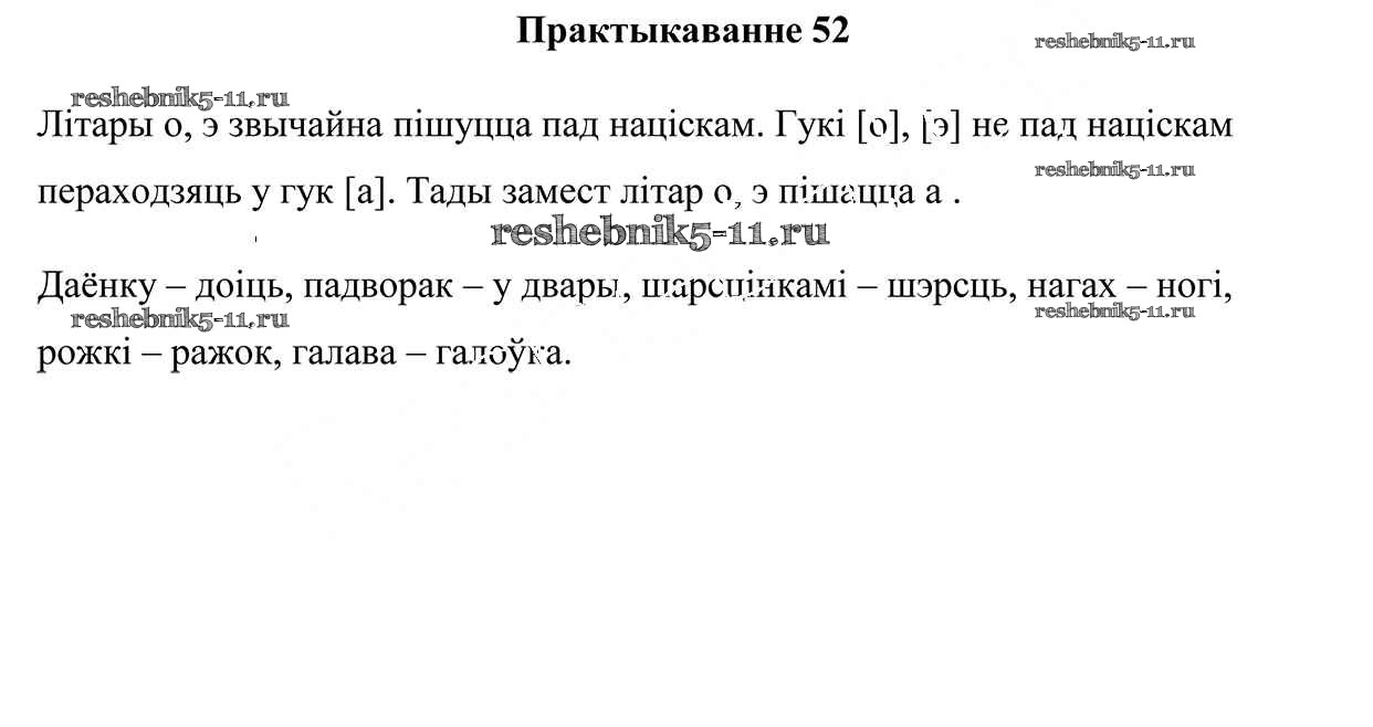 Готовая домашняя работа с ответами по Белорусскому языку за 5 класс Валочка, Зелянко, Мартынкевіч, Якуба Учебник Часть 1, 2 Национальный институт образования 2019 ФГОС - Часть 2. Практыкаванні 52