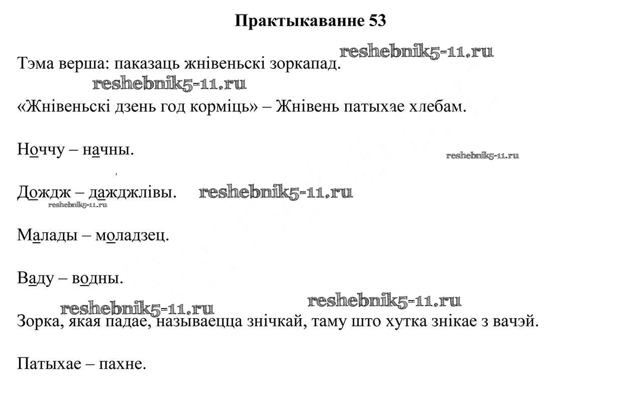 Готовая домашняя работа с ответами по Белорусскому языку за 5 класс Валочка, Зелянко, Мартынкевіч, Якуба Учебник Часть 1, 2 Национальный институт образования 2019 ФГОС - Часть 2. Практыкаванні 53