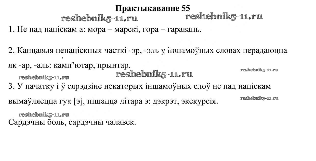Готовая домашняя работа с ответами по Белорусскому языку за 5 класс Валочка, Зелянко, Мартынкевіч, Якуба Учебник Часть 1, 2 Национальный институт образования 2019 ФГОС - Часть 2. Практыкаванні 55