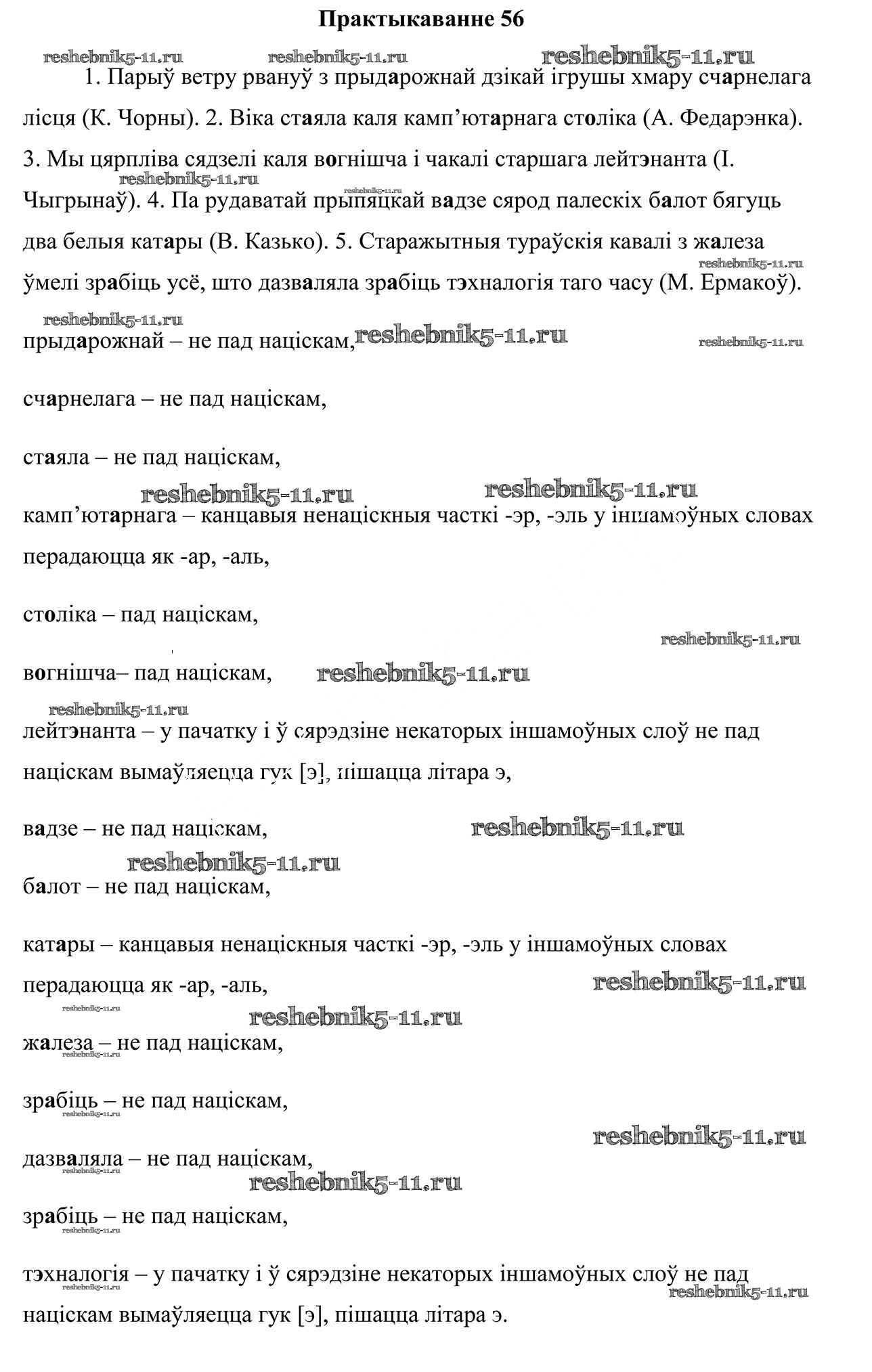 Готовая домашняя работа с ответами по Белорусскому языку за 5 класс Валочка, Зелянко, Мартынкевіч, Якуба Учебник Часть 1, 2 Национальный институт образования 2019 ФГОС - Часть 2. Практыкаванні 56
