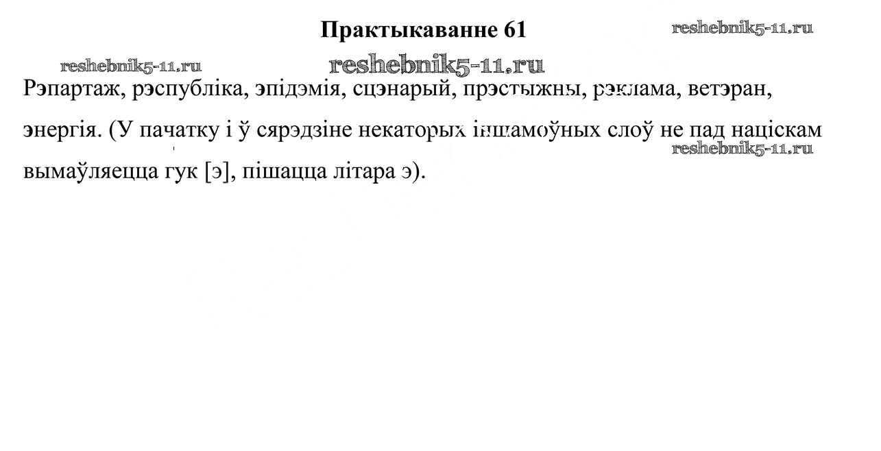 Готовая домашняя работа с ответами по Белорусскому языку за 5 класс Валочка, Зелянко, Мартынкевіч, Якуба Учебник Часть 1, 2 Национальный институт образования 2019 ФГОС - Часть 2. Практыкаванні 61