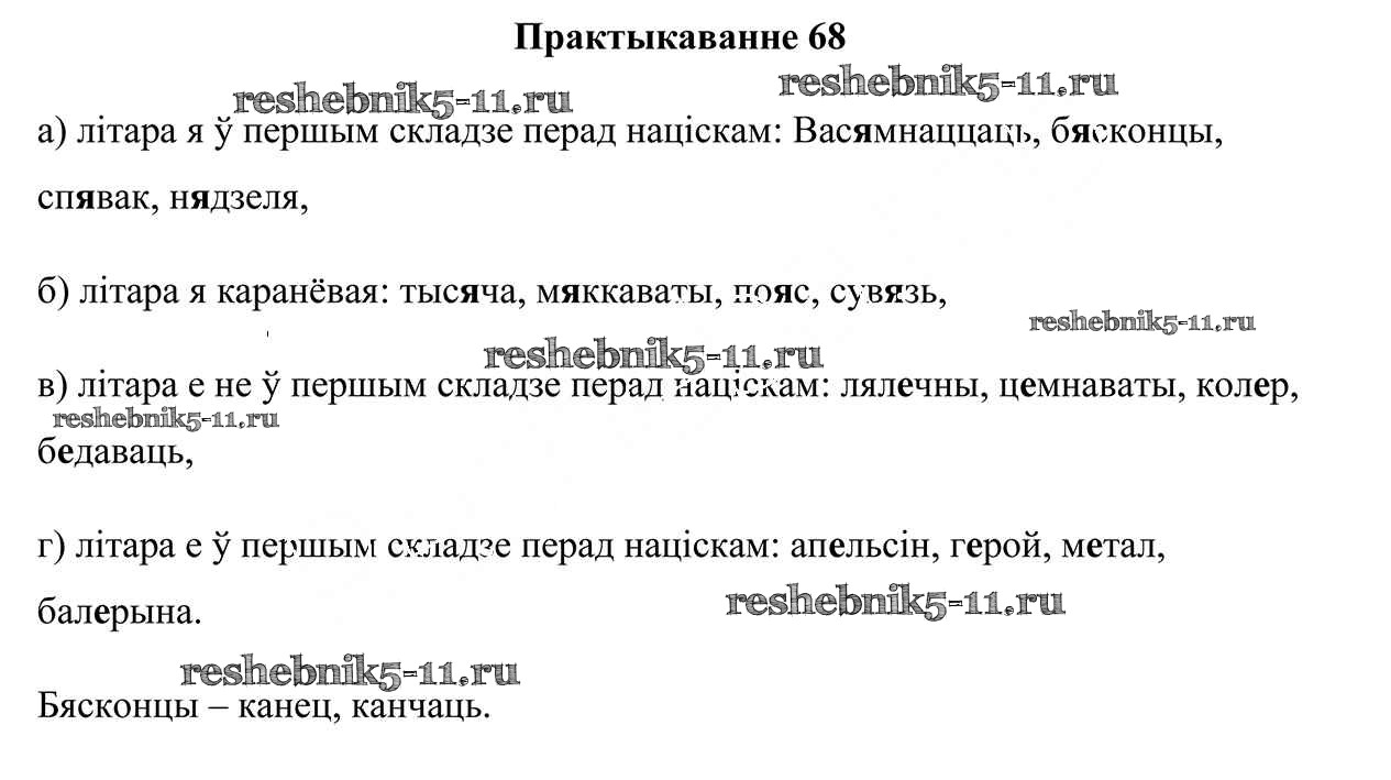 Готовая домашняя работа с ответами по Белорусскому языку за 5 класс Валочка, Зелянко, Мартынкевіч, Якуба Учебник Часть 1, 2 Национальный институт образования 2019 ФГОС - Часть 2. Практыкаванні 68