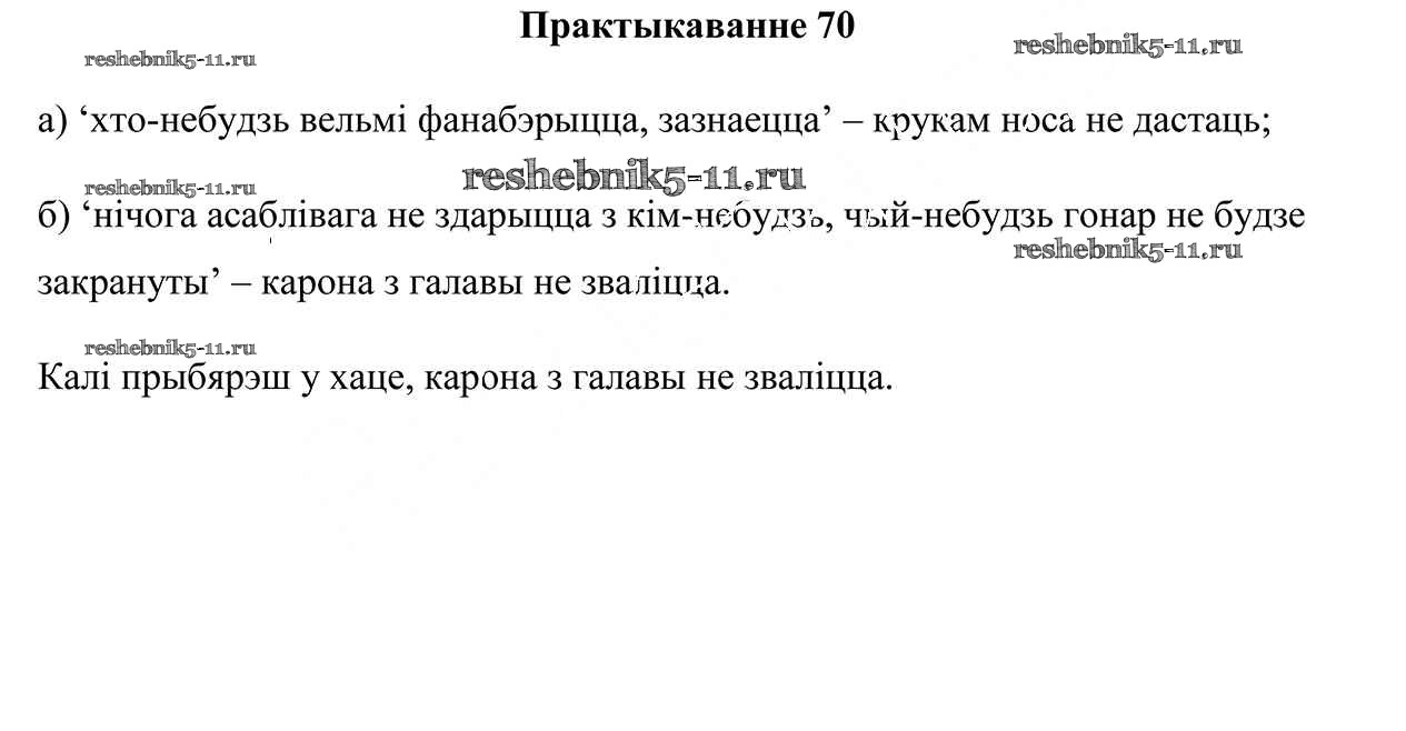 Готовая домашняя работа с ответами по Белорусскому языку за 5 класс Валочка, Зелянко, Мартынкевіч, Якуба Учебник Часть 1, 2 Национальный институт образования 2019 ФГОС - Часть 2. Практыкаванні 70