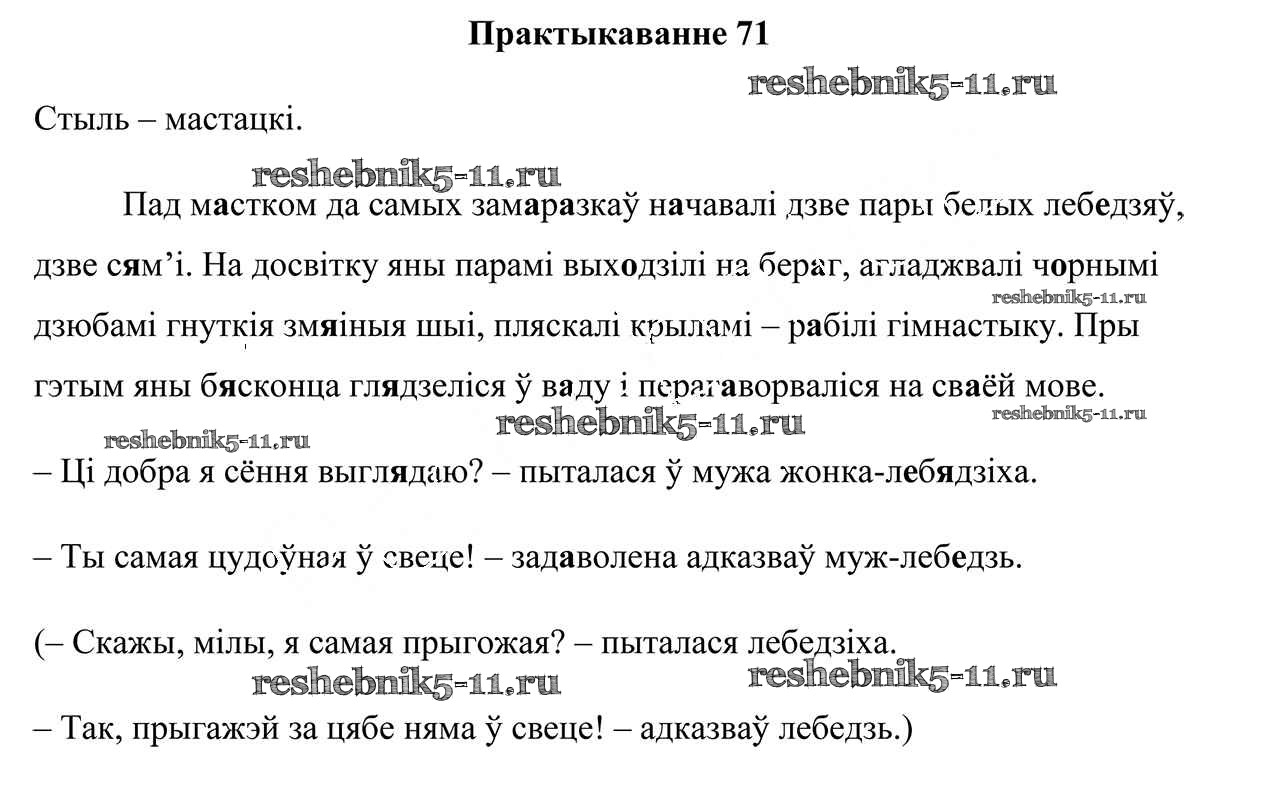 Готовая домашняя работа с ответами по Белорусскому языку за 5 класс Валочка, Зелянко, Мартынкевіч, Якуба Учебник Часть 1, 2 Национальный институт образования 2019 ФГОС - Часть 2. Практыкаванні 71
