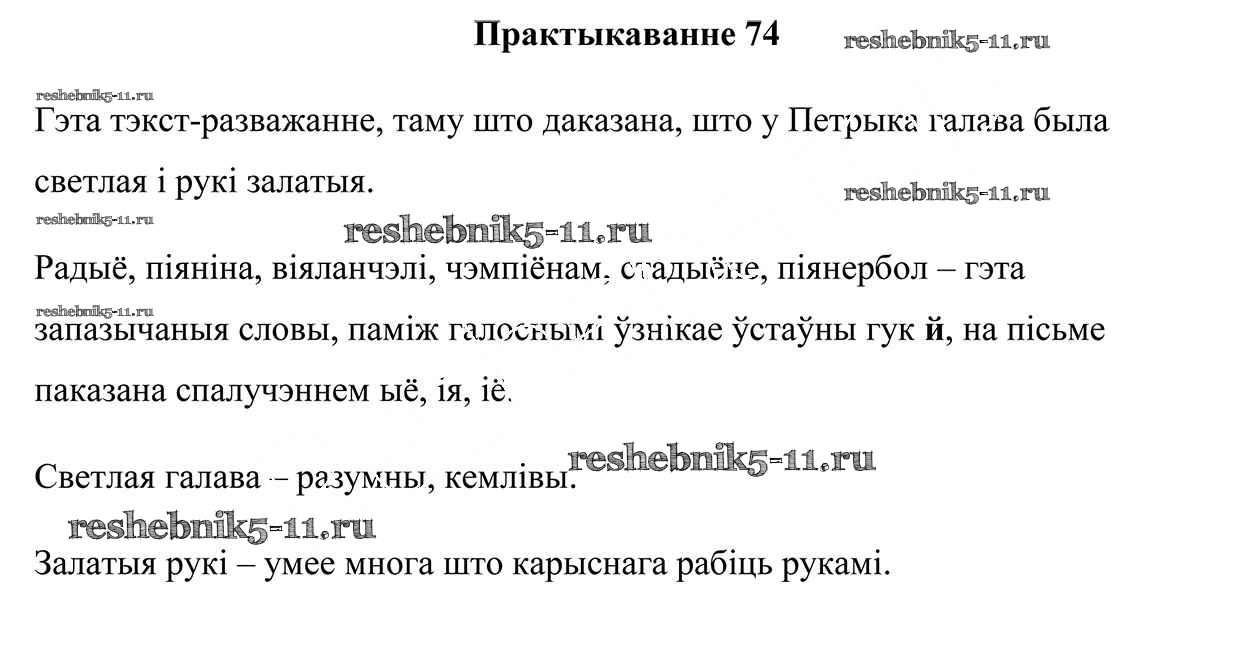 Белорусский язык за 5 класс Валочка Учебник Национальный институт образования часть 2. практыкаванні 74