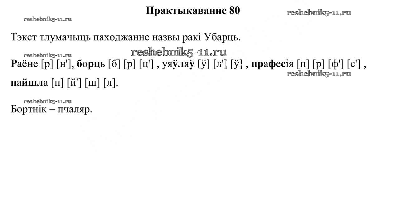 Готовая домашняя работа с ответами по Белорусскому языку за 5 класс Валочка, Зелянко, Мартынкевіч, Якуба Учебник Часть 1, 2 Национальный институт образования 2019 ФГОС - Часть 2. Практыкаванні 80
