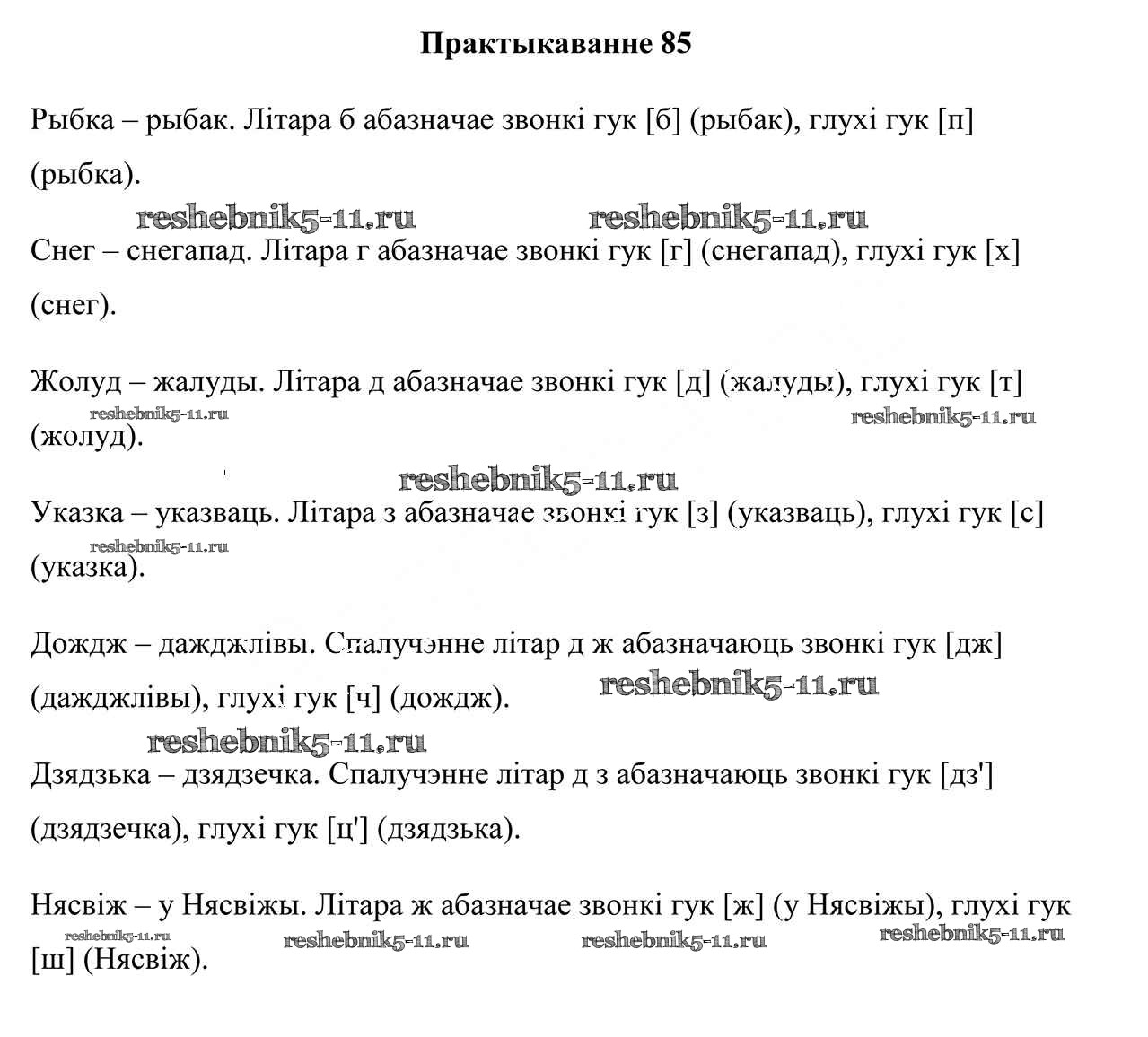 Готовая домашняя работа с ответами по Белорусскому языку за 5 класс Валочка, Зелянко, Мартынкевіч, Якуба Учебник Часть 1, 2 Национальный институт образования 2019 ФГОС - Часть 2. Практыкаванні 85