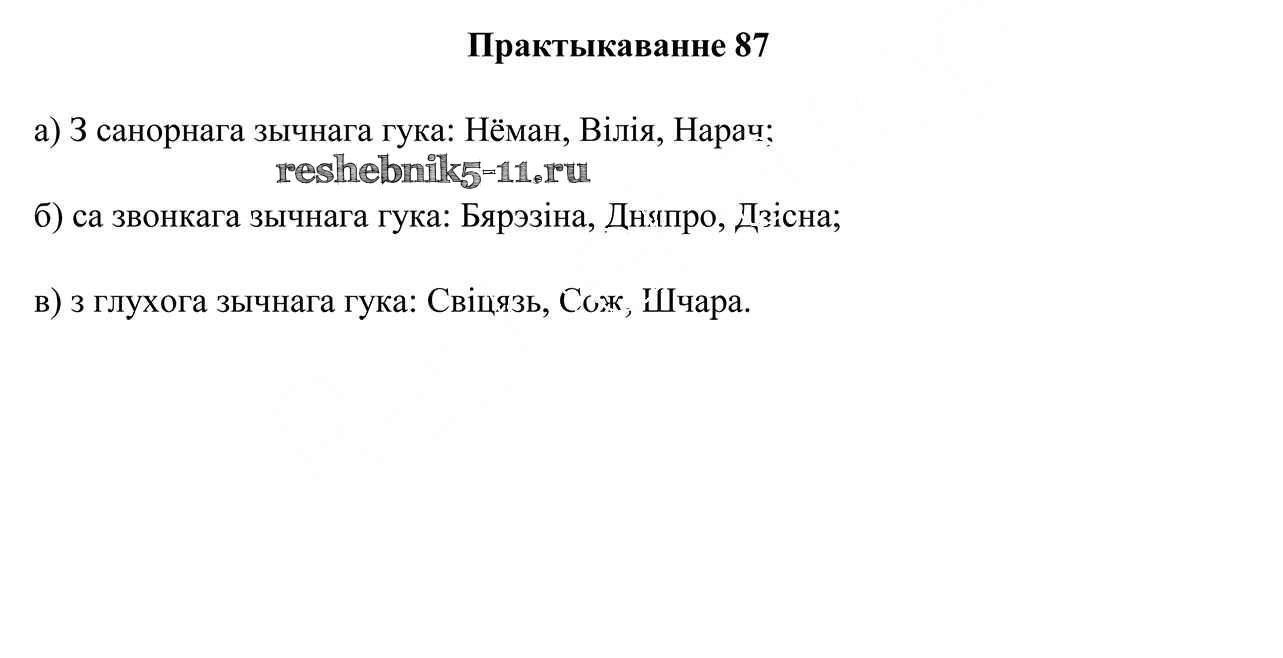 Готовая домашняя работа с ответами по Белорусскому языку за 5 класс Валочка, Зелянко, Мартынкевіч, Якуба Учебник Часть 1, 2 Национальный институт образования 2019 ФГОС - Часть 2. Практыкаванні 87