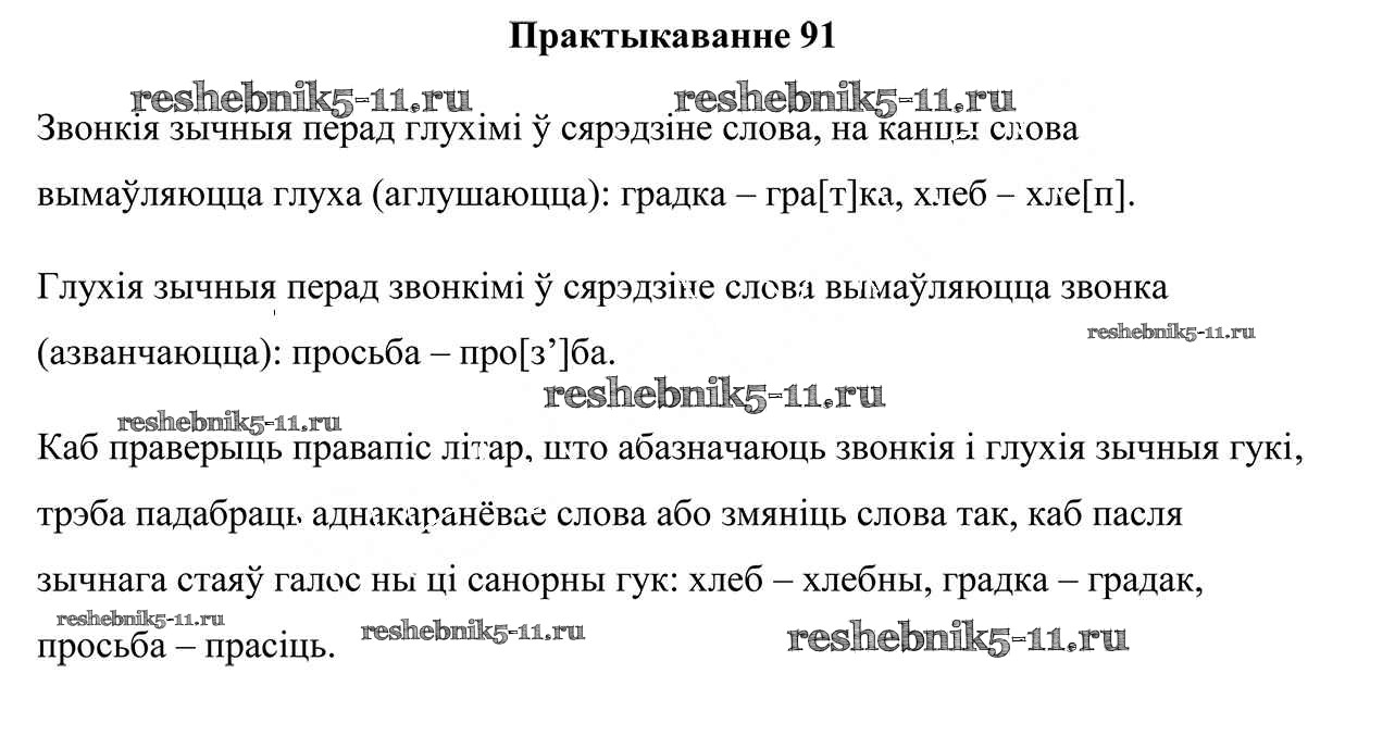 Готовая домашняя работа с ответами по Белорусскому языку за 5 класс Валочка, Зелянко, Мартынкевіч, Якуба Учебник Часть 1, 2 Национальный институт образования 2019 ФГОС - Часть 2. Практыкаванні 91