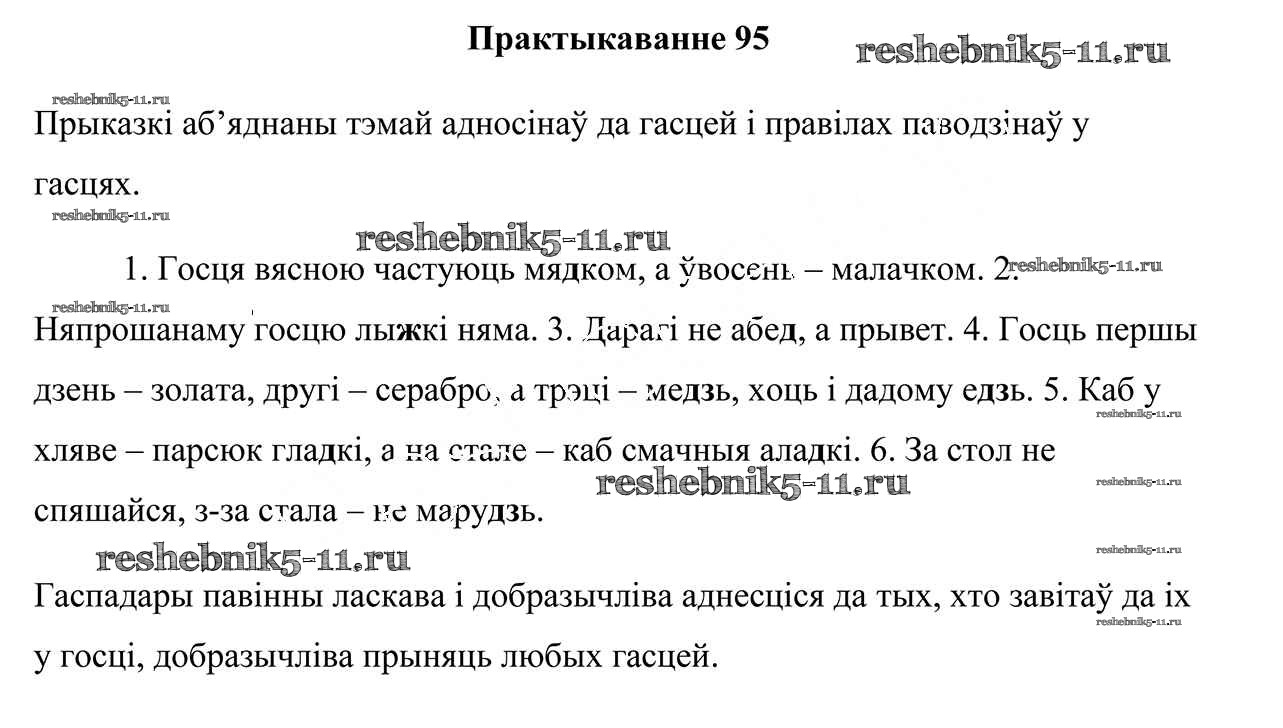 Готовая домашняя работа с ответами по Белорусскому языку за 5 класс Валочка, Зелянко, Мартынкевіч, Якуба Учебник Часть 1, 2 Национальный институт образования 2019 ФГОС - Часть 2. Практыкаванні 95
