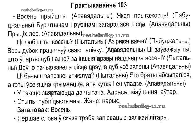 Готовая домашняя работа с ответами по Белорусскому языку за 5 класс Красней, Несцяровіч, Васюковіч, Лаурель Учебник Часть 1, 2 Национальный институт образования 2014 ФГОС - Часть 1. Практыкаванні 103