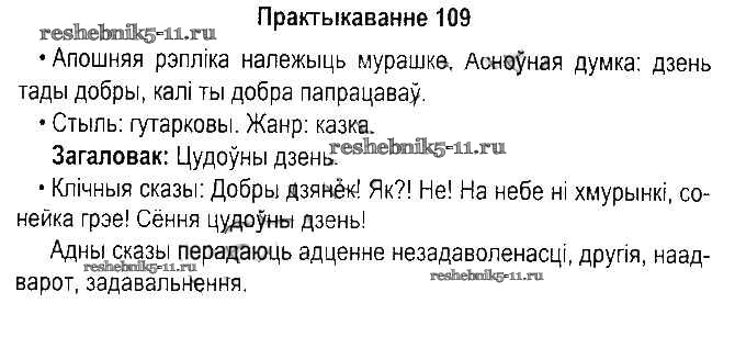 Готовая домашняя работа с ответами по Белорусскому языку за 5 класс Красней, Несцяровіч, Васюковіч, Лаурель Учебник Часть 1, 2 Национальный институт образования 2014 ФГОС - Часть 1. Практыкаванні 109