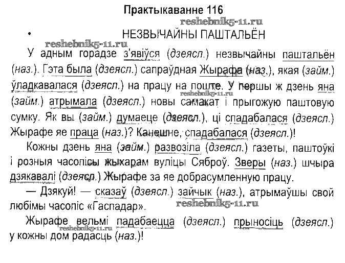 Готовая домашняя работа с ответами по Белорусскому языку за 5 класс Красней, Несцяровіч, Васюковіч, Лаурель Учебник Часть 1, 2 Национальный институт образования 2014 ФГОС - Часть 1. Практыкаванні 116