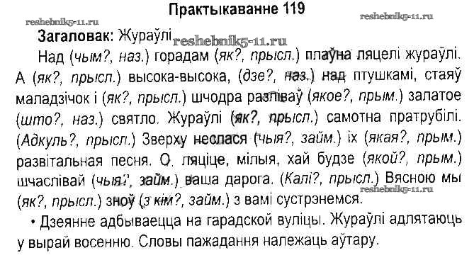 Готовая домашняя работа с ответами по Белорусскому языку за 5 класс Красней, Несцяровіч, Васюковіч, Лаурель Учебник Часть 1, 2 Национальный институт образования 2014 ФГОС - Часть 1. Практыкаванні 119