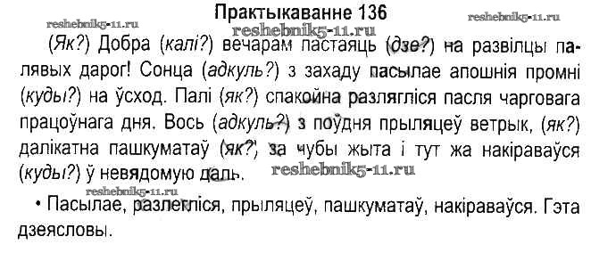 Готовая домашняя работа с ответами по Белорусскому языку за 5 класс Красней, Несцяровіч, Васюковіч, Лаурель Учебник Часть 1, 2 Национальный институт образования 2014 ФГОС - Часть 1. Практыкаванні 136
