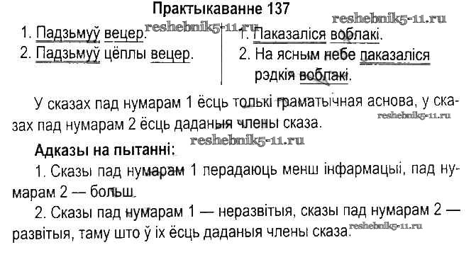 Готовая домашняя работа с ответами по Белорусскому языку за 5 класс Красней, Несцяровіч, Васюковіч, Лаурель Учебник Часть 1, 2 Национальный институт образования 2014 ФГОС - Часть 1. Практыкаванні 137