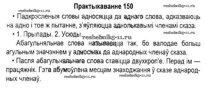 Готовая домашняя работа с ответами по Белорусскому языку за 5 класс Красней, Несцяровіч, Васюковіч, Лаурель Учебник Часть 1, 2 Национальный институт образования 2014 ФГОС - Часть 1. Практыкаванні 150
