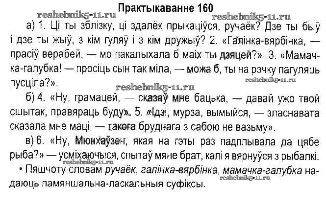Готовая домашняя работа с ответами по Белорусскому языку за 5 класс Красней, Несцяровіч, Васюковіч, Лаурель Учебник Часть 1, 2 Национальный институт образования 2014 ФГОС - Часть 1. Практыкаванні 160