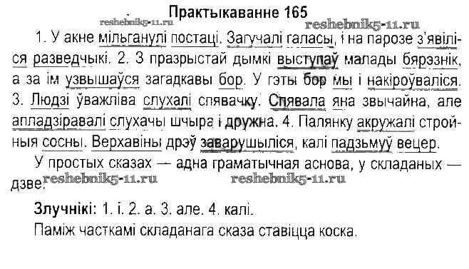 Готовая домашняя работа с ответами по Белорусскому языку за 5 класс Красней, Несцяровіч, Васюковіч, Лаурель Учебник Часть 1, 2 Национальный институт образования 2014 ФГОС - Часть 1. Практыкаванні 165