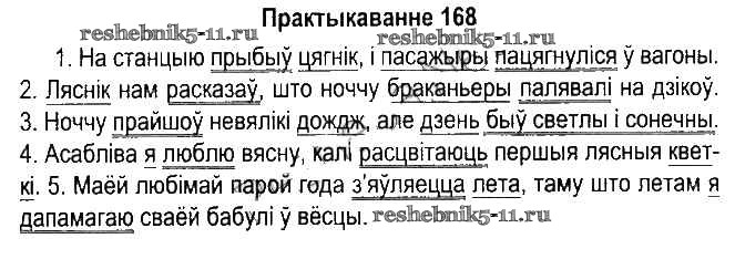 Готовая домашняя работа с ответами по Белорусскому языку за 5 класс Красней, Несцяровіч, Васюковіч, Лаурель Учебник Часть 1, 2 Национальный институт образования 2014 ФГОС - Часть 1. Практыкаванні 168
