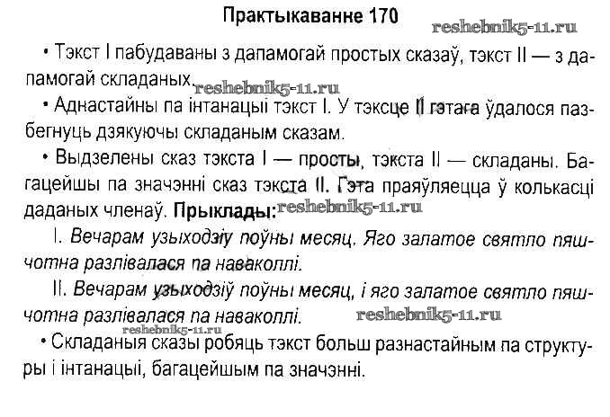 Готовая домашняя работа с ответами по Белорусскому языку за 5 класс Красней, Несцяровіч, Васюковіч, Лаурель Учебник Часть 1, 2 Национальный институт образования 2014 ФГОС - Часть 1. Практыкаванні 170