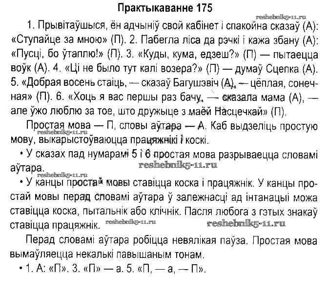 Готовая домашняя работа с ответами по Белорусскому языку за 5 класс Красней, Несцяровіч, Васюковіч, Лаурель Учебник Часть 1, 2 Национальный институт образования 2014 ФГОС - Часть 1. Практыкаванні 175