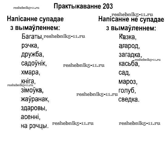 Готовая домашняя работа с ответами по Белорусскому языку за 5 класс Красней, Несцяровіч, Васюковіч, Лаурель Учебник Часть 1, 2 Национальный институт образования 2014 ФГОС - Часть 1. Практыкаванні 203