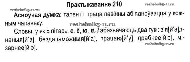 Готовая домашняя работа с ответами по Белорусскому языку за 5 класс Красней, Несцяровіч, Васюковіч, Лаурель Учебник Часть 1, 2 Национальный институт образования 2014 ФГОС - Часть 1. Практыкаванні 210