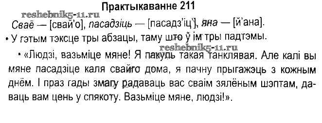Готовая домашняя работа с ответами по Белорусскому языку за 5 класс Красней, Несцяровіч, Васюковіч, Лаурель Учебник Часть 1, 2 Национальный институт образования 2014 ФГОС - Часть 1. Практыкаванні 211