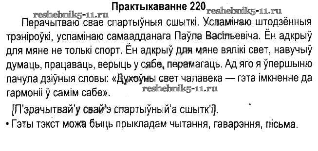 Готовая домашняя работа с ответами по Белорусскому языку за 5 класс Красней, Несцяровіч, Васюковіч, Лаурель Учебник Часть 1, 2 Национальный институт образования 2014 ФГОС - Часть 1. Практыкаванні 220