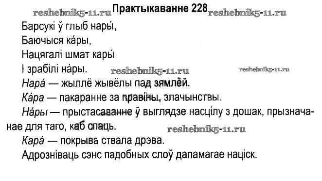 Готовая домашняя работа с ответами по Белорусскому языку за 5 класс Красней, Несцяровіч, Васюковіч, Лаурель Учебник Часть 1, 2 Национальный институт образования 2014 ФГОС - Часть 1. Практыкаванні 228