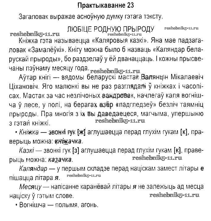 Белорусский язык за 5 класс Красней Учебник Национальный институт образования часть 1. практыкаванне 23