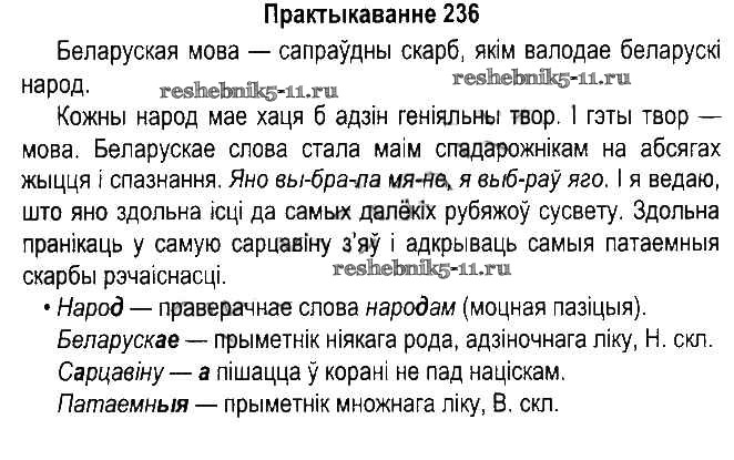 Готовая домашняя работа с ответами по Белорусскому языку за 5 класс Красней, Несцяровіч, Васюковіч, Лаурель Учебник Часть 1, 2 Национальный институт образования 2014 ФГОС - Часть 1. Практыкаванні 236